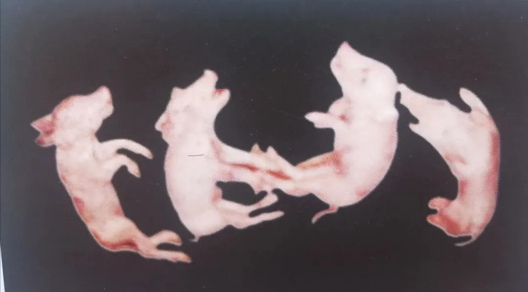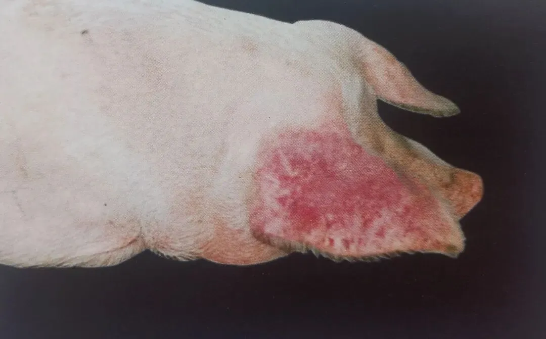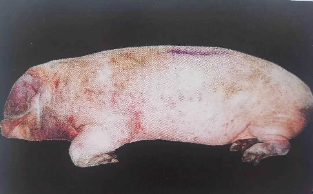 4. 部分病猪耳朵、腹部皮肤发绀(“蓝耳”典型体征)