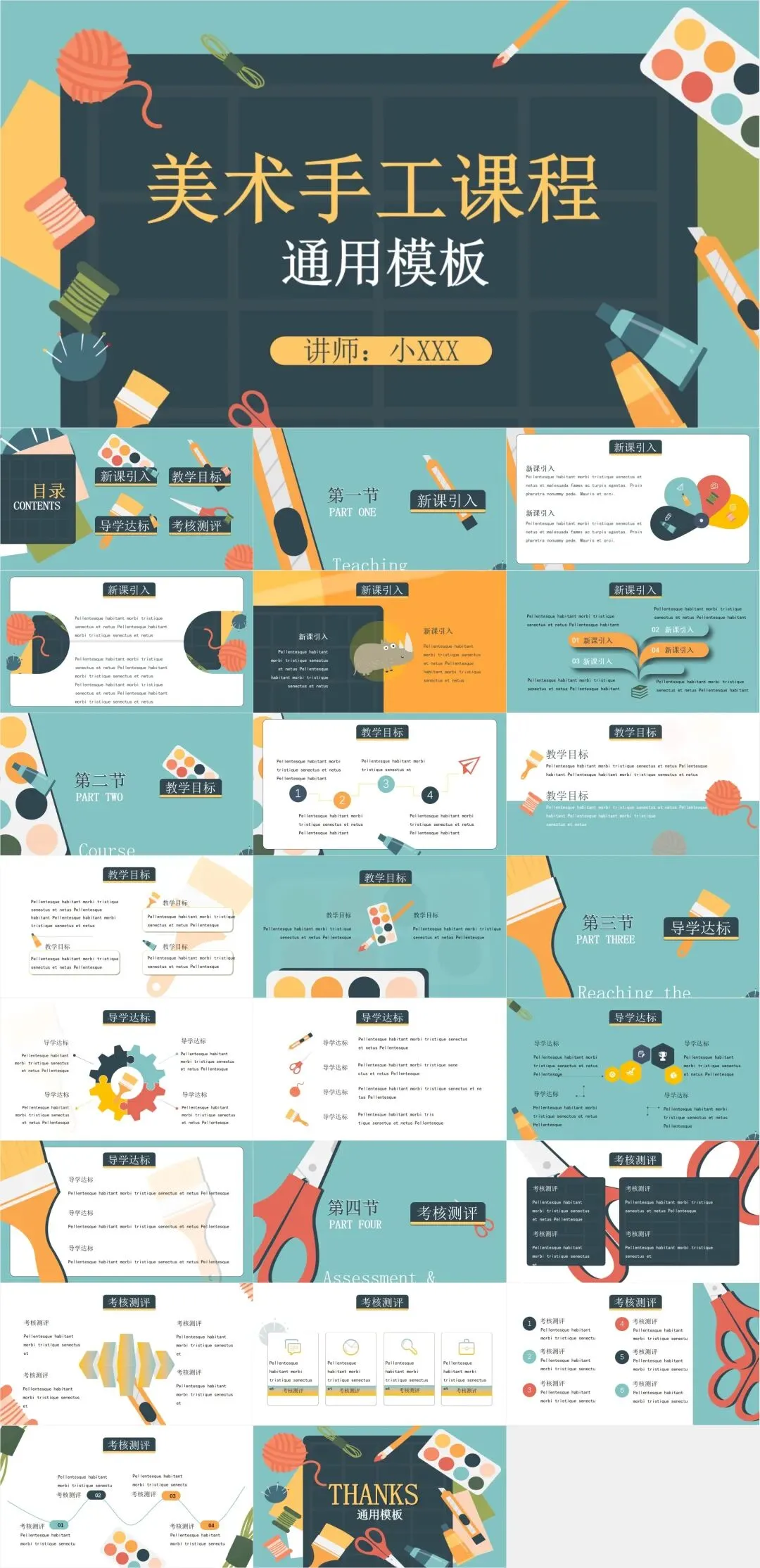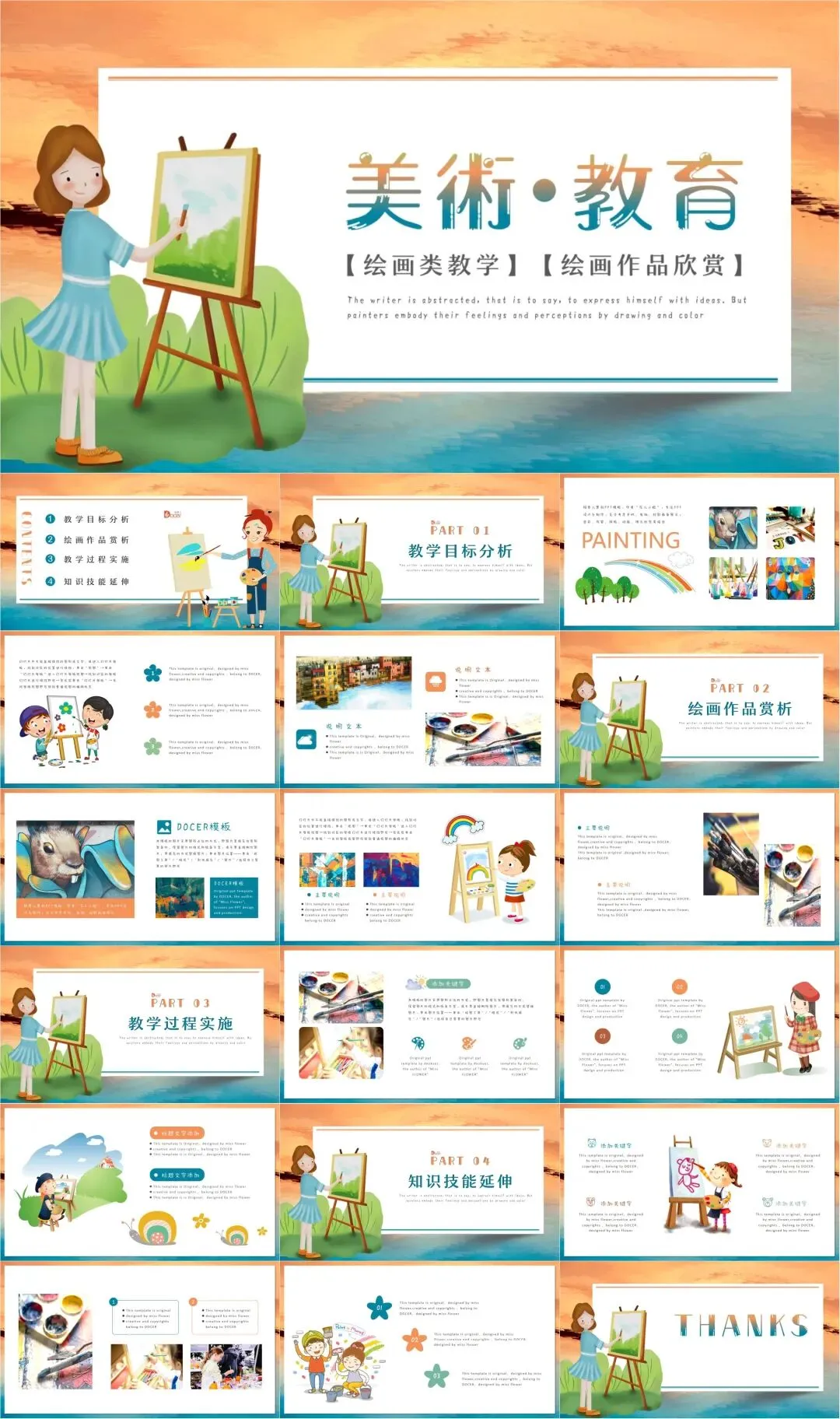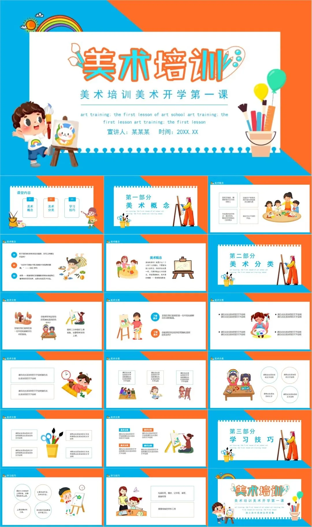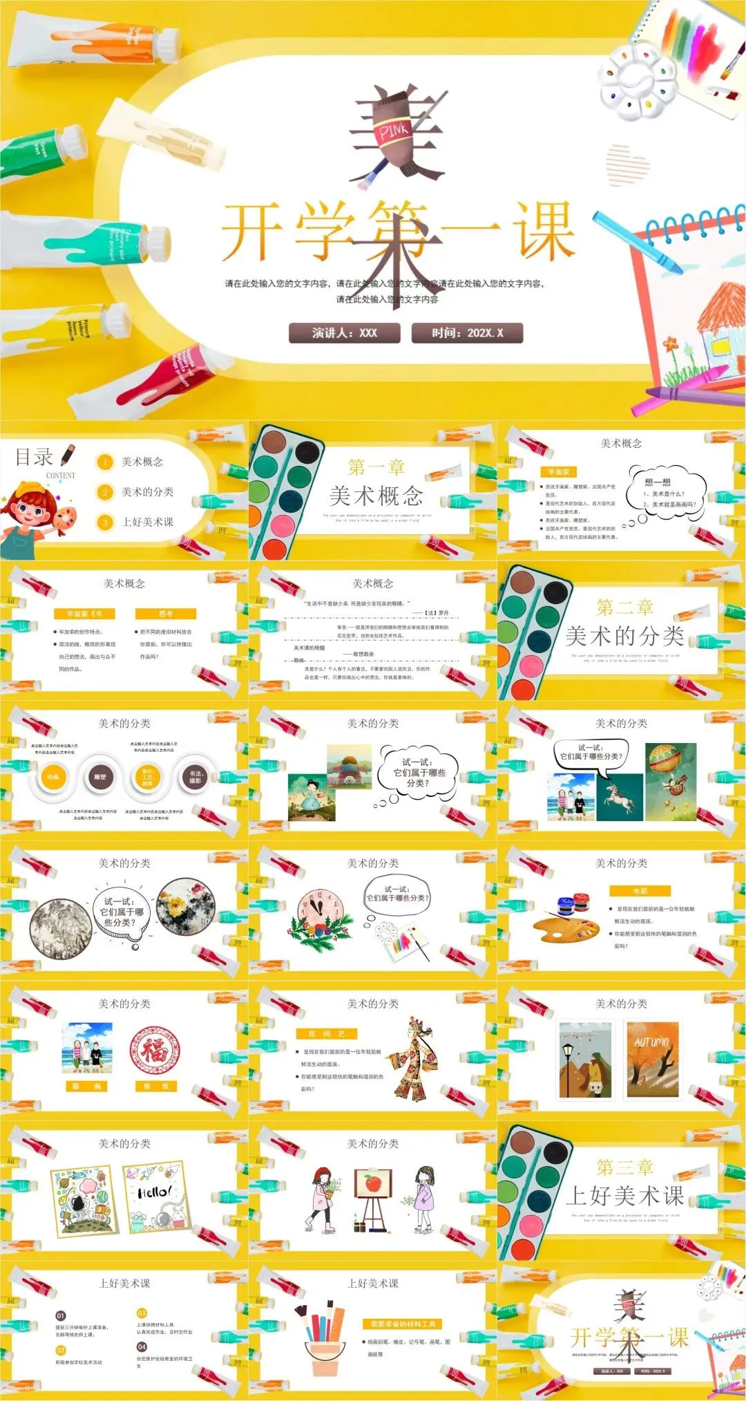今天分享的是【实用美术绘画、艺术培训、绘画作品欣赏PPT模板