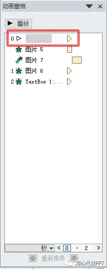 5、再点击“动画窗格”,我们就能在动画窗格中找到那个音乐文件了。