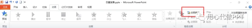 4、点击PPT上方的“动画”一栏。