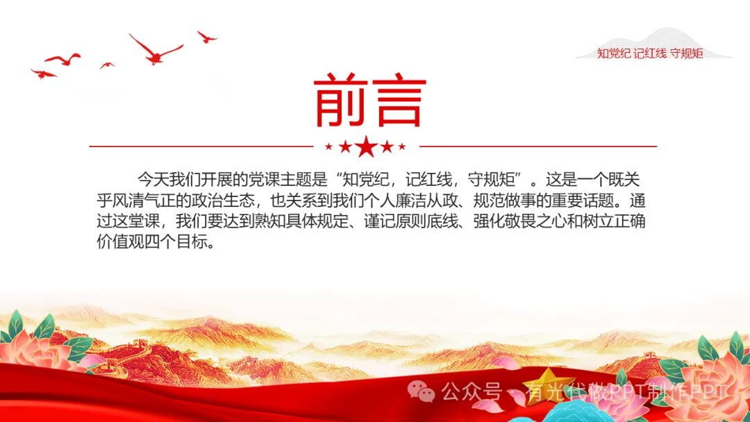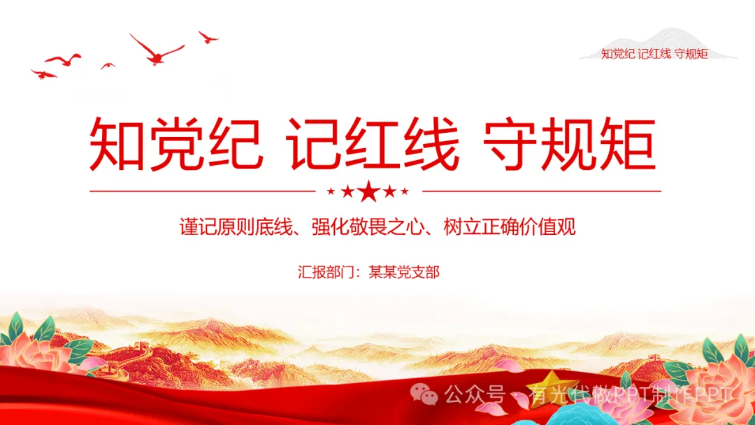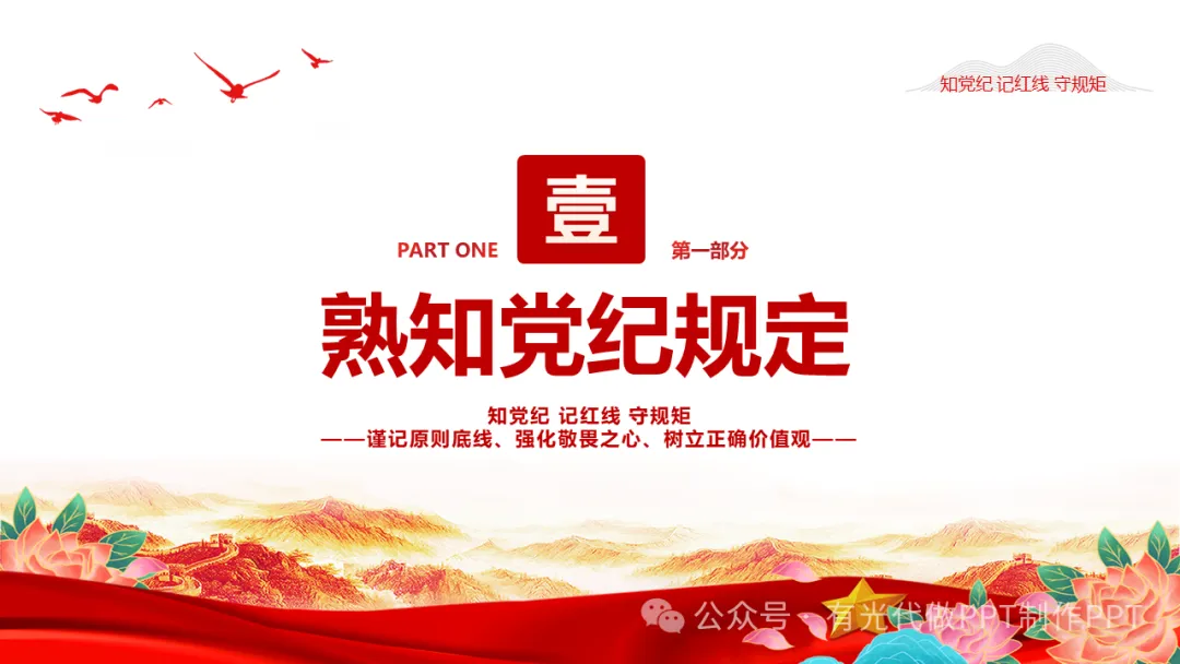 >知党纪记红线守规矩PPT大气精美党纪学习教育微党课