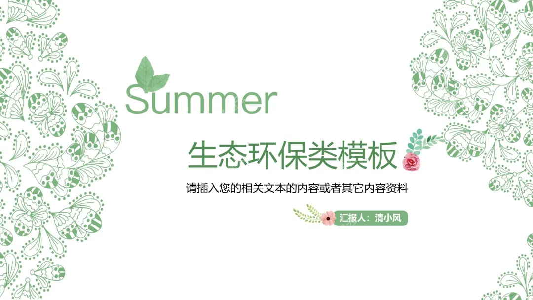 这是一份PPT演示文稿,整体围绕保护环境、呵护地球主题打造,包含可自定义添加标题与内容的板块,适配绿色环保相关的工作汇报、主题宣讲等场景,风格清新自然,动态效果适配环保主题氛围。