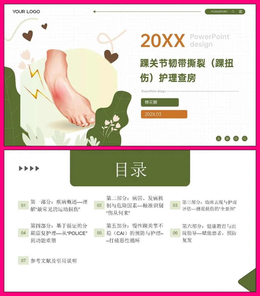 C886踝关节韧带撕裂(踝扭伤)护理查房带参考文献-PPT