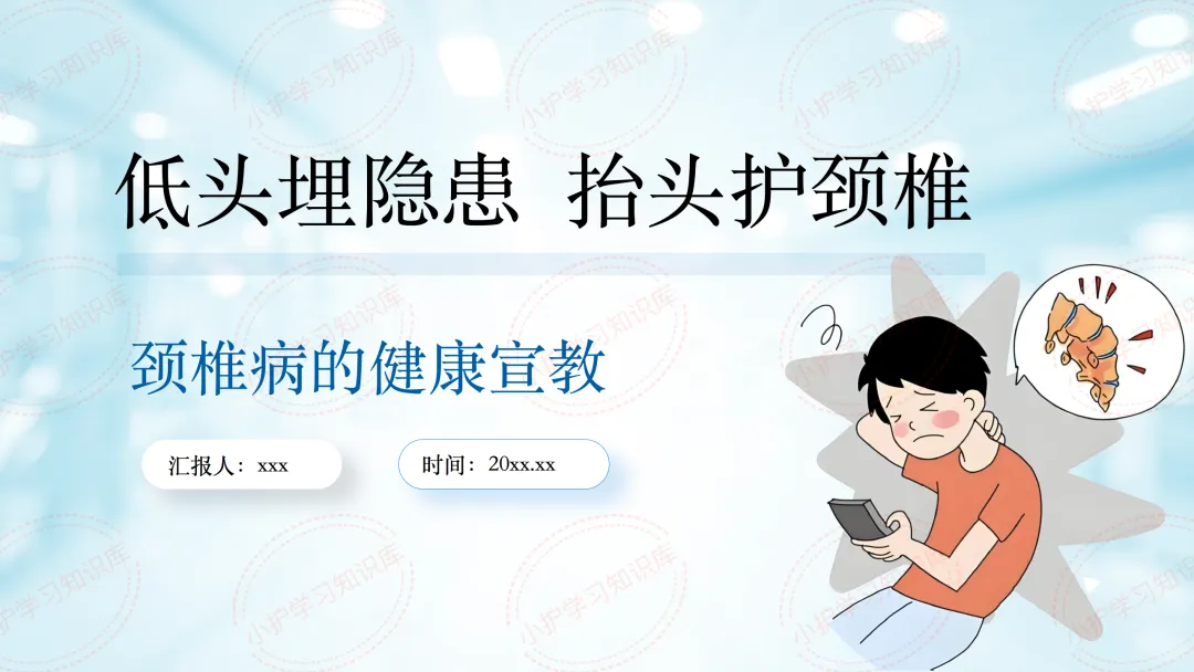 今天我们汇报的主题是“颈椎病的健康宣教”。