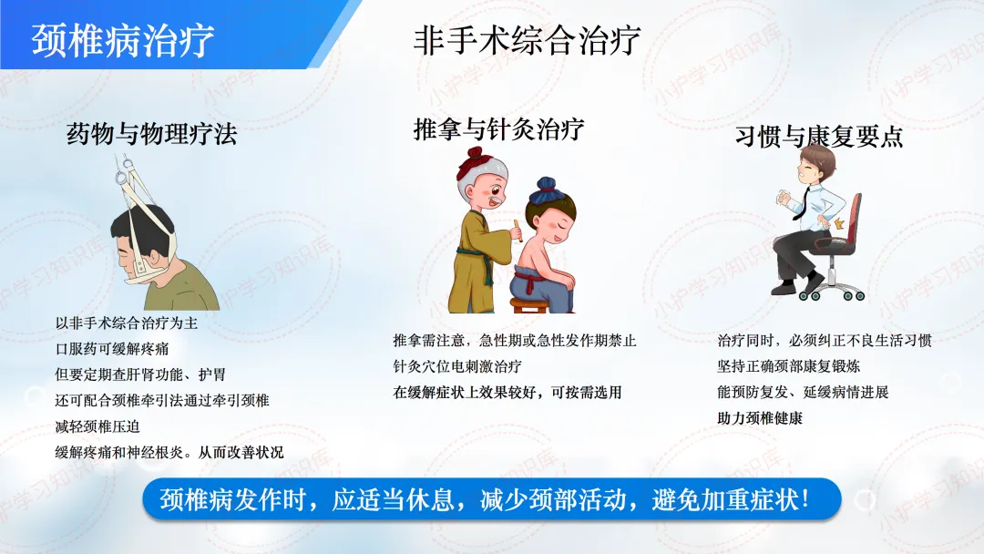 综上所述,颈椎健康需要我们从认识、预防、治疗到康复进行全程管理。让我们从纠正日常姿势和习惯做起,守护好我们和患者的“生命支柱”。