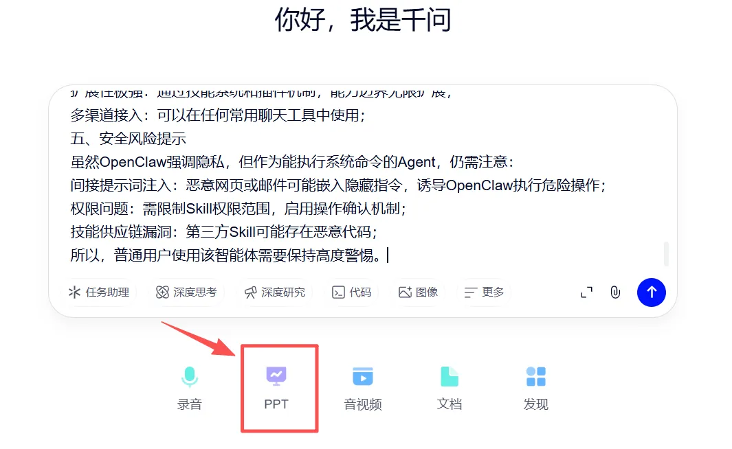 拿到逻辑清晰的大纲后,再复制到豆包PPT助手或者通义千问内,就能一键生成完整PPT。两步配合下来,不仅结构更扎实,内容也更有说服力。