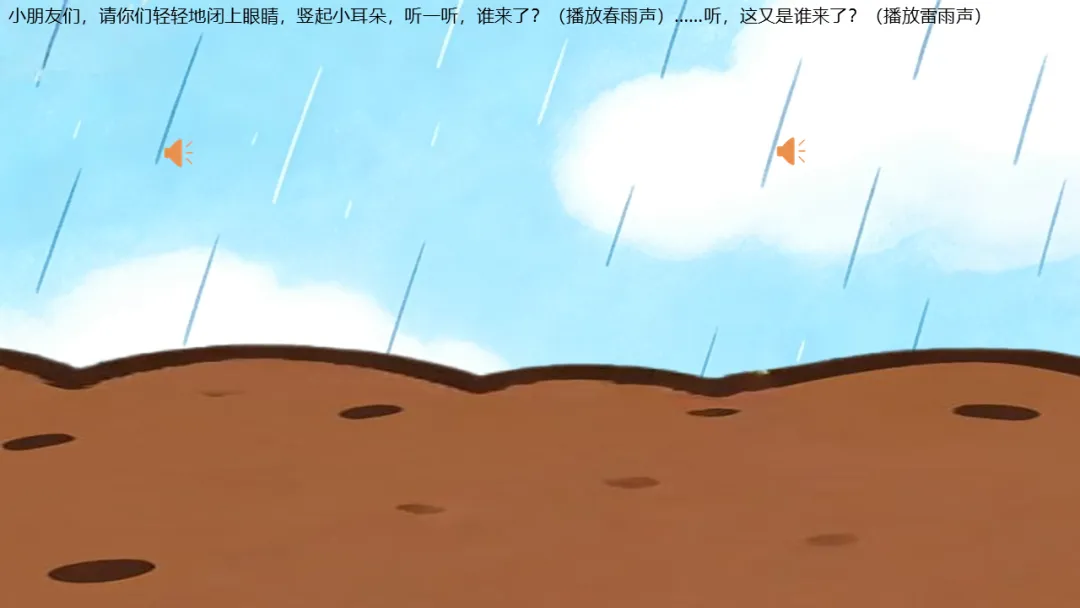 教师:播放《春雨声、雷雨声》音频,引导幼儿安静倾听。