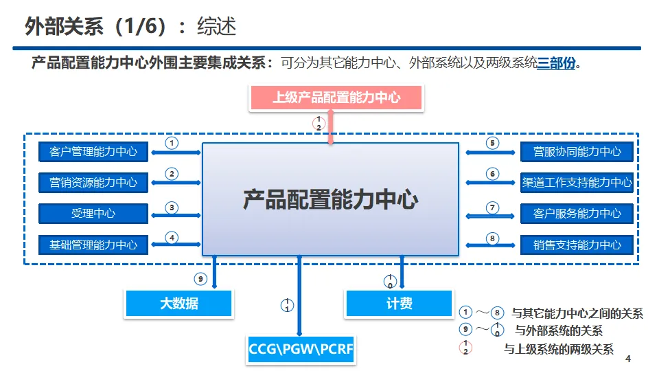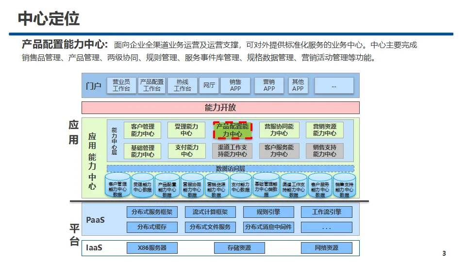 本方案围绕企业全渠道数字化运营需求,设计产品配置能力中心整体架构与落地应用,定位为面向全渠道业务运营与支撑的标准化业务中心,是企业智慧数字化运营平台的核心能力模块。方案依托IaaS、PaaS技术底座,与客户管理、营服协同、受理、渠道支持等九大能力中心深度协同,对接计费、大数据及上级配置平台,形成一体化、可开放、可扩展的运营支撑体系。