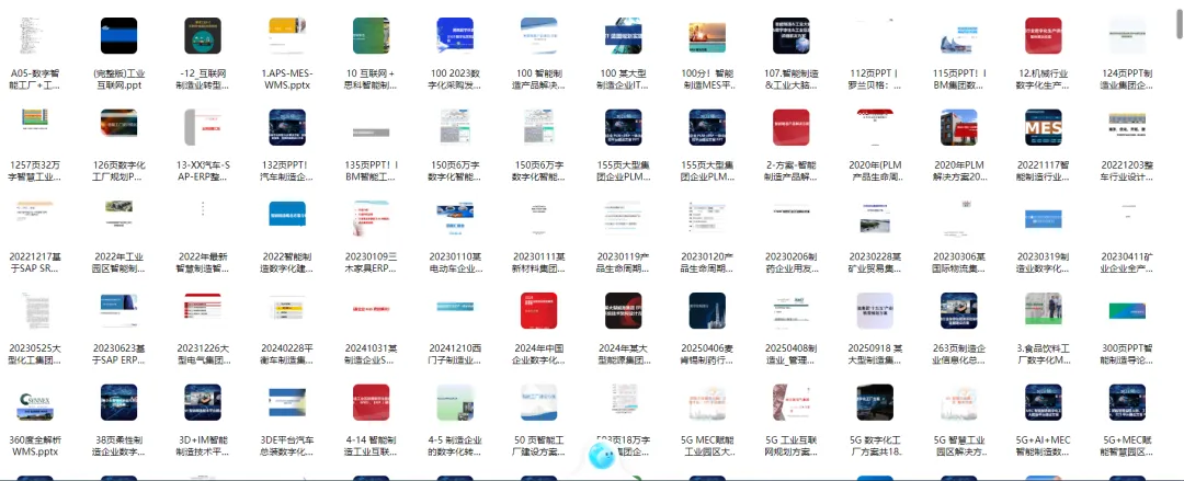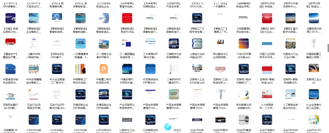 1300余份数字工厂合集(PPT+WORD):智能工厂+工业互联网+供应链+智能制造+制造业数字化+MES+APS+PLM+ERP+WMS+EMS+SCADA+MOM+SCM+CRM+QMS
