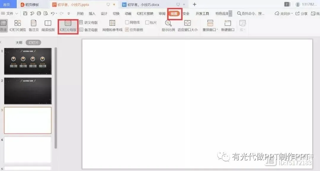 母版,是一个很好用的工具,特别是在批量修改背景时,不用很多人似乎都忽略了这个功能。
