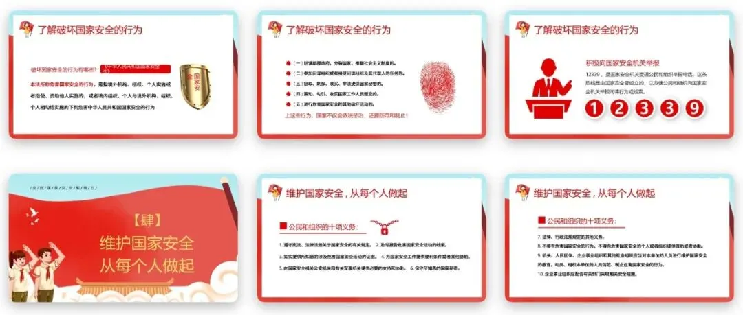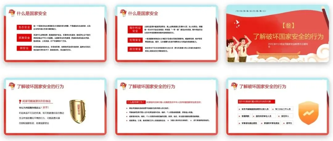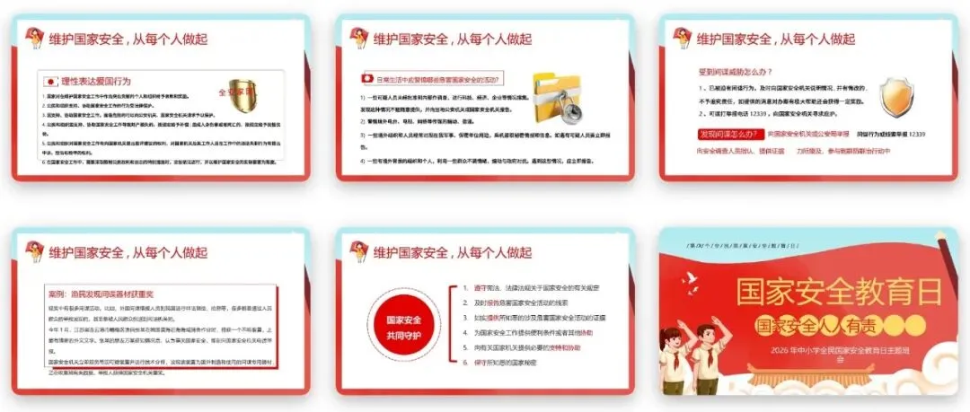 国家安全教育日主题班会中,重要的一环就是警示教育,带同学们了解破坏国家安全的行为,认清间谍行为的危害,筑牢国家安全的思想防线。