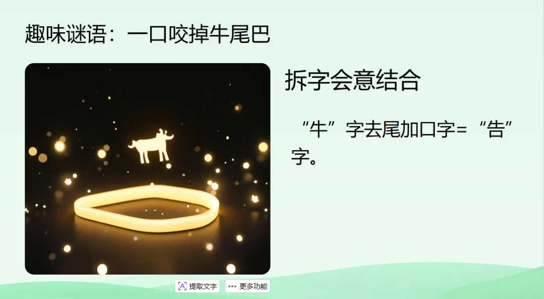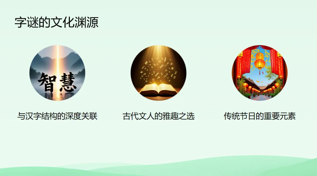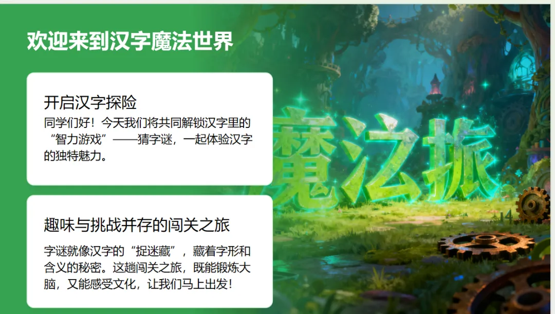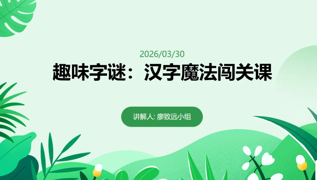 于是,我花了一整晚的时间,从挑选整理字谜、设计PPT模板,到写好详细的课件内容和演讲稿,每一步都很认真,力求让整个展示流畅自然。