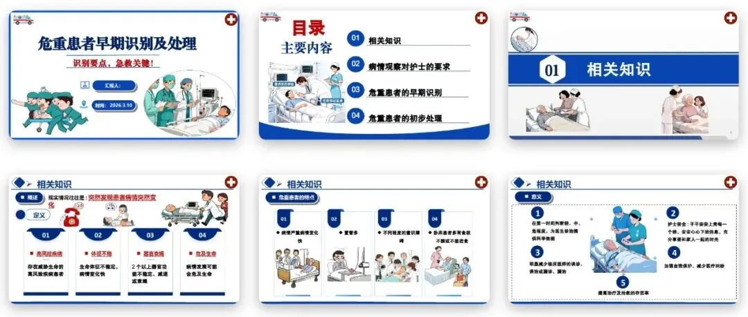 危重患者早期识别及处理PPT中对意识障碍的分类与特征解读,为神经科护士的病情观察工作提供了规范的评估标准,确保护理评估的准确性与同质化。