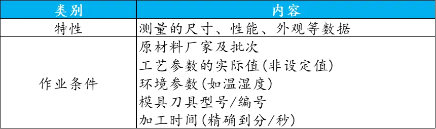 ②作业条件:生产时间、操作工、设备编号、原材料批次、工艺参数(比如温度、压力)、工装夹具信息,这些才是“关键线索”。