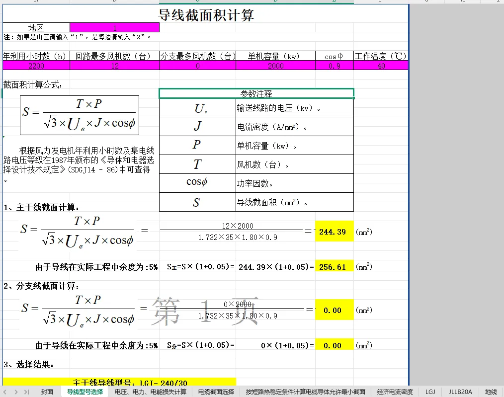 2 ##风电场导线电缆型号选择及电压、电力、电能损失计算.xls