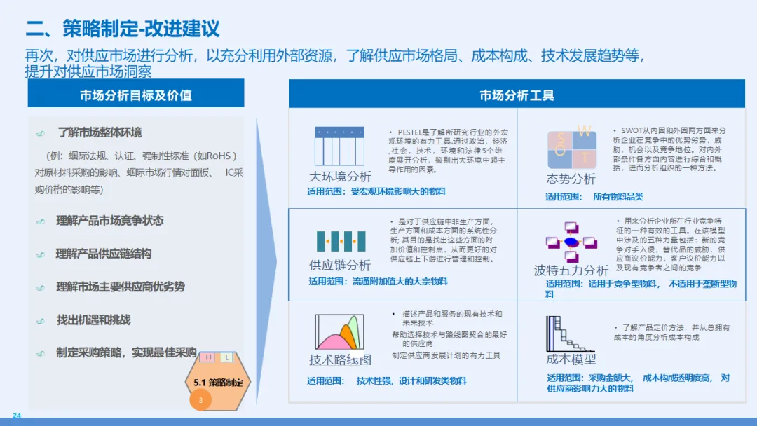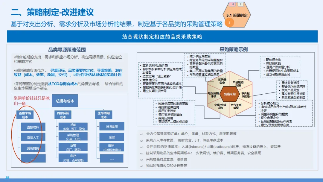本方案围绕制造业采购供应链“低成本、高齐套”核心愿景,以全面集成采购→智慧采购为演进目标,构建覆盖战略、流程、组织、系统、数据的一体化采购管控体系,推动采购从事务型向价值型、战略型、智慧型转型。 方案基于全流程需求调研与干系人分析,梳理出采购到付款端到端主流程,搭建11个二级流程、81个三级流程的完整框架,涵盖策略制定、供应商管理、采购计划、商务招投标、采购执行、库存管理、质量管理、物流、主数据、关务等全环节,明确流程责任、KPI与关键控制点。 针对当前痛点,方案提出系统性改进:战略层面建立品类管理与TCO总拥有成本分析,推行战略寻源;供应商层面实施全生命周期差异化管理,优化准入、考核与退出机制;商务与招投标规范寻源方式,固化合同模板,提升效率与合规性;库存管理推行批次追溯、库位优化与呆滞料治理,提高周转;质量管理实现检验标准系统化、异常处理闭环。 方案从组织、流程、系统、数据四维落地,深化SRM、ERP、WMS系统集成,推进数据标准化与线上协同,最终实现降本增效、供应稳定、风险可控、生态共赢的采购供应链能力升级,支撑企业智能制造与数字化转型。