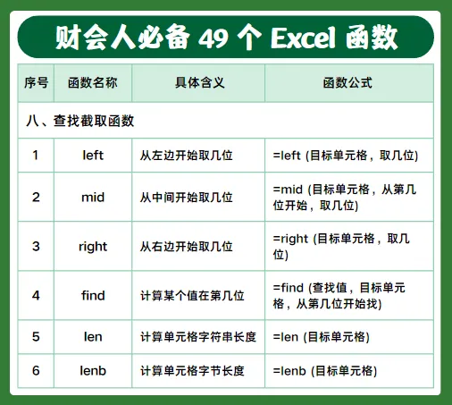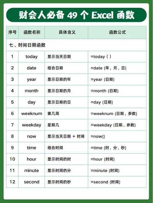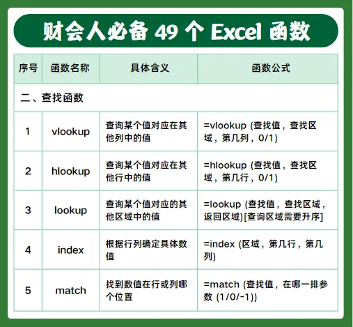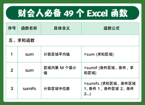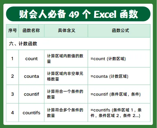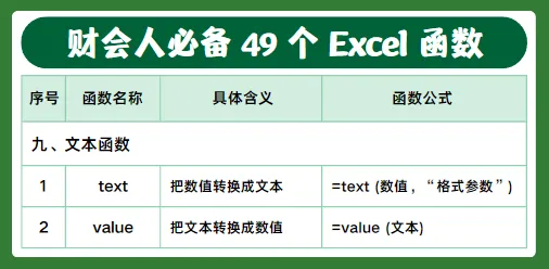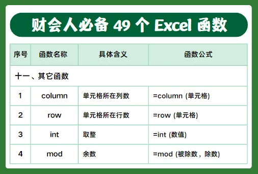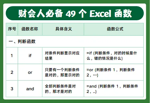 做财务、会计每天都离不开 Excel,今天整理了49个高频实用函数,包含判断、查询、求和、计数、日期、文本等常用公式,工作中直接套用就行,建议收藏备用。