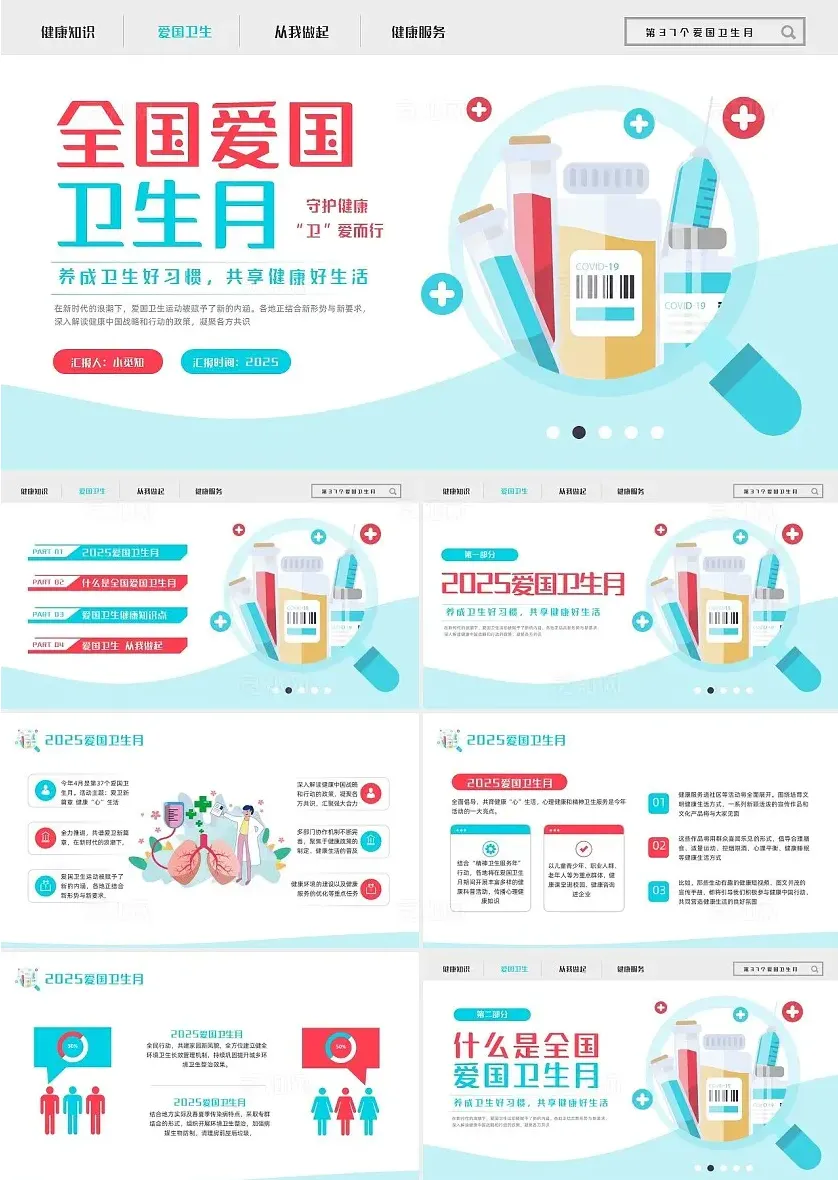 ◆本期分享:全国爱国卫生日主题PPT模板(10套)