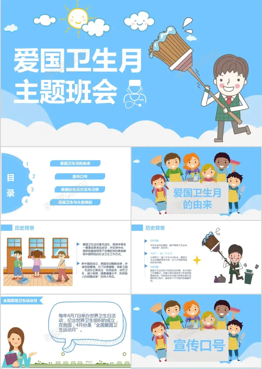 今天给大家带来10套全国爱国卫生日主题PPT模板,可用于节日介绍、主题班会、讲座教育等