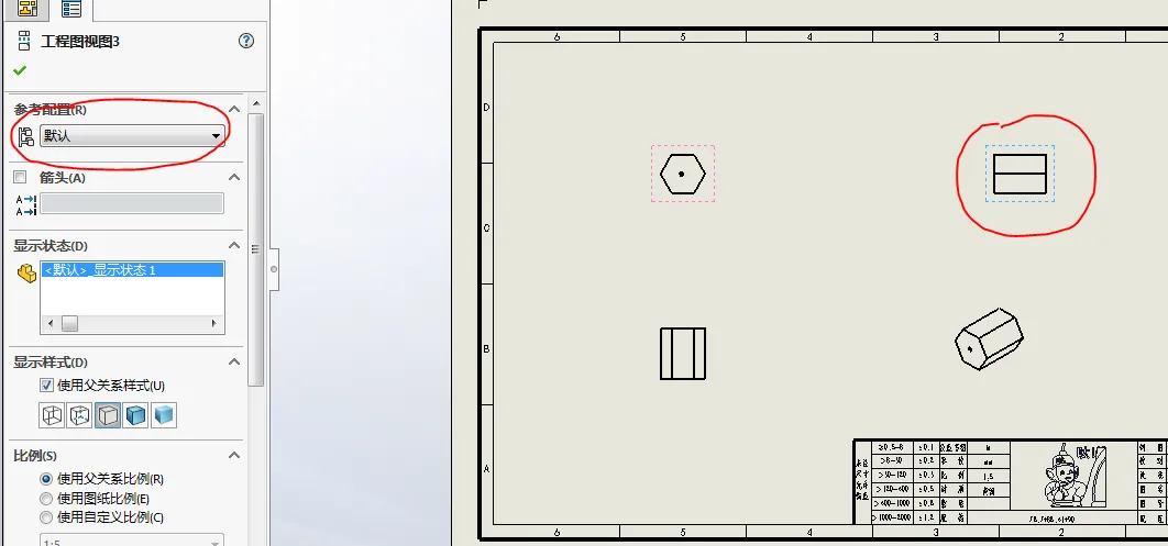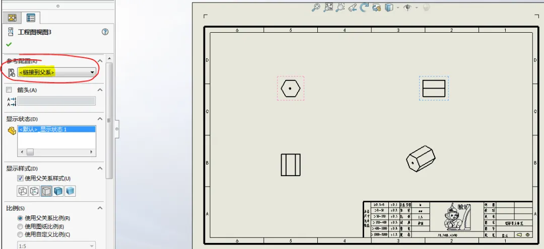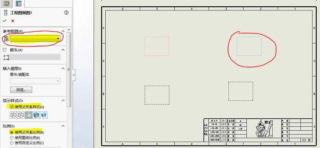SW工程图模板虽然是个好东西,但是总有遗漏的地方,尤其是关系到配置。随便点一个视图,样式,比例可以设置成关联父系,但是配置是一片空白,因为视图还没绑定模型,自然不知道配置。绑定模型生成工程图后,这里就变成了模型当前使用的配置。一张工程图,除了主视图,少说有2~3个其他视图。也不用多,有个百来张工程图,这玩意儿挨个去点想想就头皮发麻。就算不去点,检查所有视图是否都采用相同配置也是件费力不讨好的事。为了方便讲述,听取粉丝意见,只贴关键部分代码段,其余代码段跟过往没啥大区别,就不浪费篇幅了。ShtNames = SwDrw.GetSheetNamesFor i = 0 To UBound(ShtNames) Views = SwDrw.Sheet(ShtNames(i)).GetViews For j = 0 To UBound(Views) If Views(j).GetBaseView Is Nothing Then '主视图(主视图没有基础视图) Views(j).UseSheetScale = True Else Views(j).LinkParentConfiguration = True End If Next Erase ViewsNextErase ShtNames