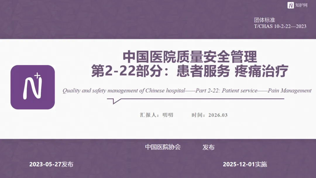 >【PPT】中国医院质量安全管理第2-22部分:患者服务 疼痛治疗