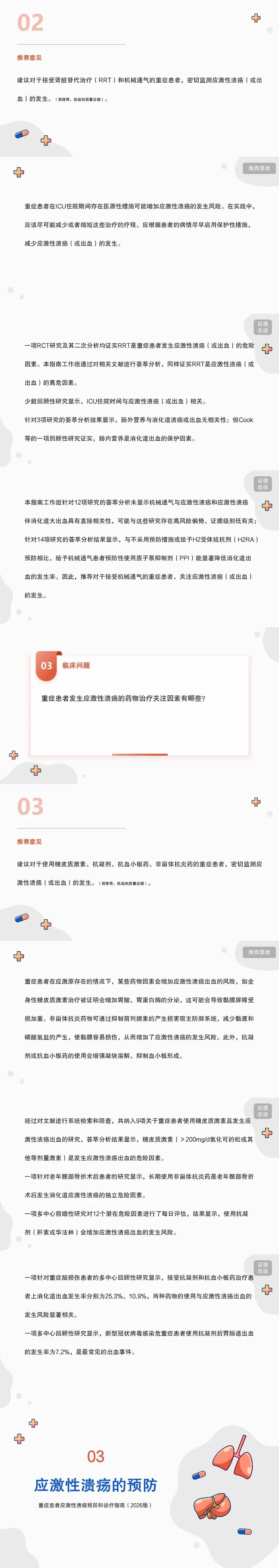 2.建议对于接受肾脏替代治疗(RRT)和机械通气的重症患者,密切监测应激性溃疡(或出血)的发生。