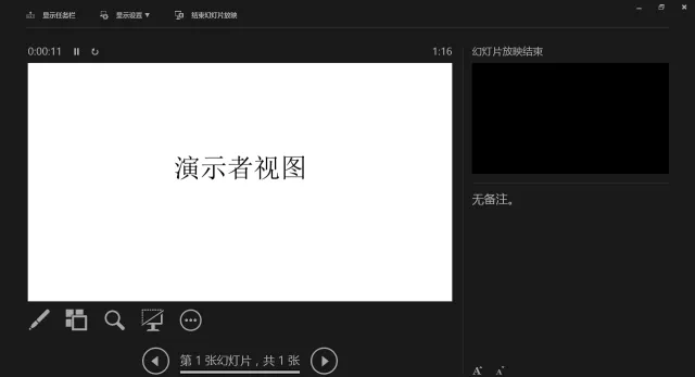 (2)然后按下【Alt+F5】键进入演讲者视图模式,当播放至备注页时,右侧即可看到备注内容啦!