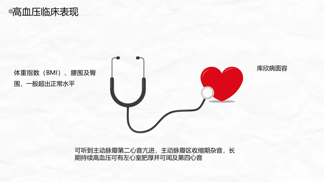 - 其他:体重指数(BMI)、腰围及臀围一般超出正常水平,部分患者可见库欣病面容。