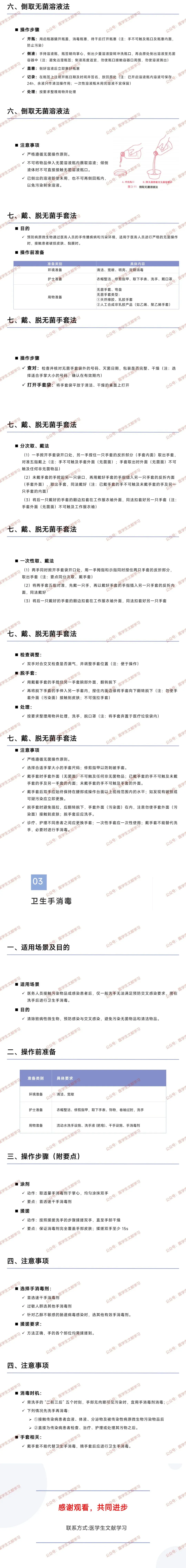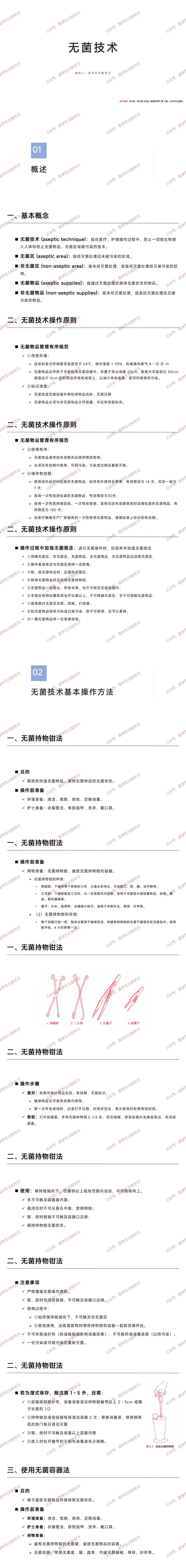 - 无菌技术:防止一切微生物侵入人体、避免无菌物品 / 区域污染的操作技术。
