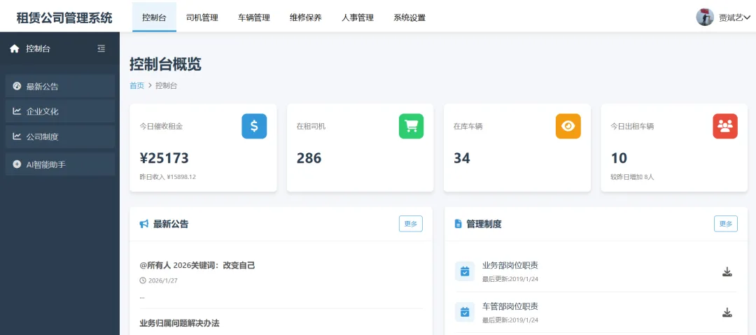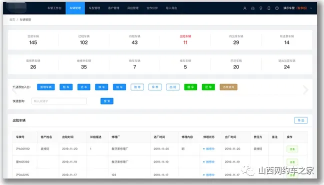 专用于网约车、长租型汽车租赁公司的租车管理系统,一步解决管理乱、效率低、人力成本高的问题。本人(贾斌艺13834667492)通过从事网约车租赁行业9年工作经验,根据所有租赁公司存在的实际情况,自主开发的一套适合网约车租赁行业的SaaS管理系统和企业OA办公系统。