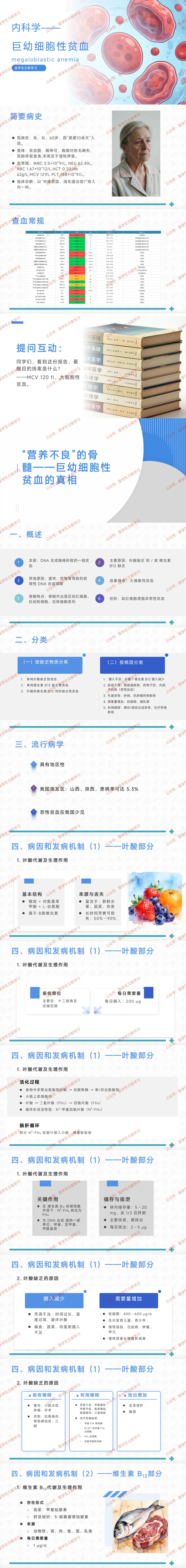 大细胞性贫血:MCV↑、MCH↑、MCHC 正常