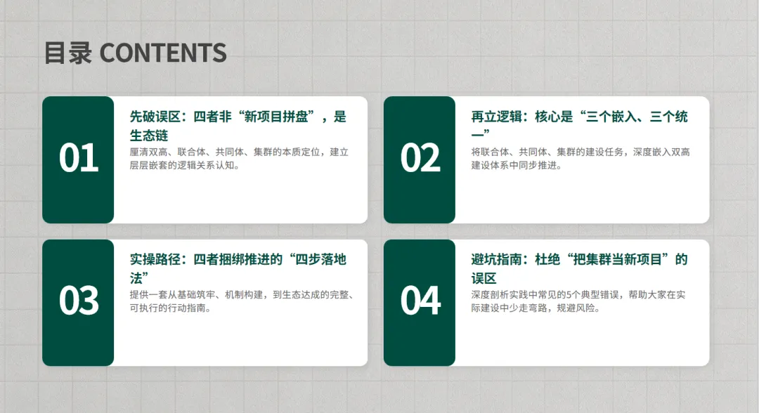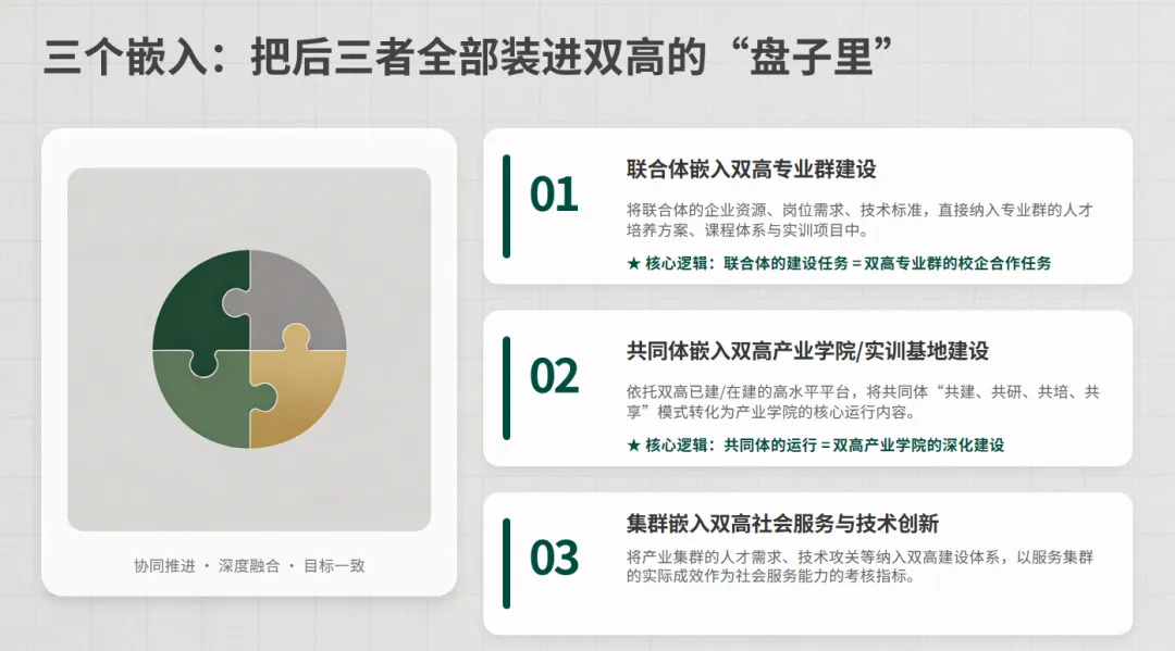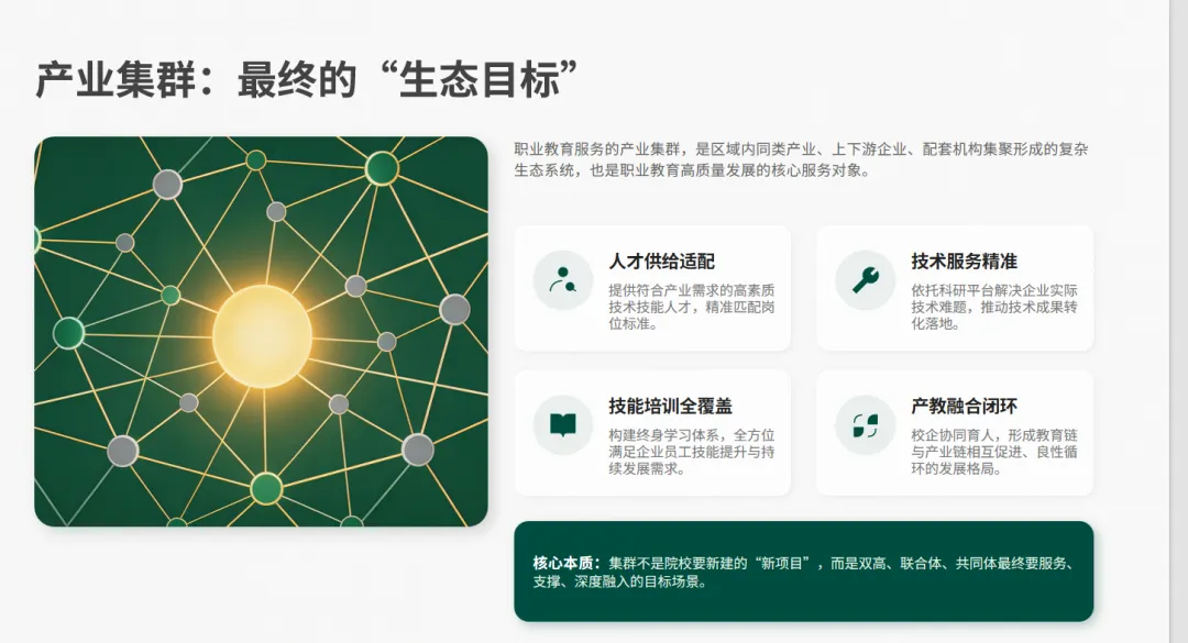>14张PPT说透提升办学核心竞争力:以系统思维抓实 “双高 -联合体-共同体 -集群” 联动建设