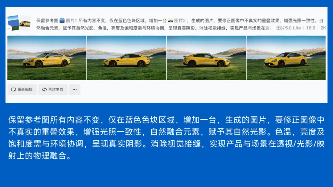 目前大多数 AI 一键生成 PPT 的工具,要么是套模板,要么是生成图片,文字笔画变形,要么是图片无法显示在页面上,根本无法用于正式场合。那既然用不了,我们的思路是什么?是手动完成排版,再用 AI 渲染素材。我们要做的,是手动把文字排版清楚,尤其是把重点信息体现出来:然后,把场景图放到文案下方,这时候就会发现,中间放产品的区域,大概也就只有这么多:这时候,你可以画一个蓝色的色块。目的就是告诉AI,产品主体出现在这个区域内:打开即梦,输入这样一段提示词,让 AI 帮你完成产品图与场景的融合:这样一来,就能生成一张全新的、符合我们排版布局的素材:当然,如果你不想找场景图和产品图,只是单纯想给 PPT 页面加个背景,也可以用这个思路。咋办呢?比如说,我们现在要做一些截图展示,可以先把图片摆到页面上:然后给 AI 一个提示词,让它帮我们生成一张有具体场景,且有人物主体的素材:最后再把它放到背景上,这个页面不就搞定了?全程不用在网上搜一张图片:老规矩,还是先手动完成简单排版,区分出信息的层级:因为做 PPT 展示的核心,是展示信息,这一点,任何工具都改变不了,所以务必手动搞定。现在,这个页面背景太单调,上方左右两侧也有点空,所以,我们的思路,就是直接在背景上,画出不同颜色的色块:然后,告诉 AI 在蓝色和红色色块区域内,分别增加什么样的元素,以及背景需要什么样的画面:最后还是把文字内容直接贴在指定区域内,是不是也能搞定了?思路是不是已经清楚了?通过画色块,限定生图区域,就能完美地得到符合排版布局的构图:关于AI工具,想要用好,一定要有清晰的思路,而不是一味地想着一键生成。如果你现在没有AI辅助设计PPT的思路,强推这门【真有用的AI+PPT案例可】,几杯奶茶钱,掌握真有用的AI思路:如果你想30天系统提升PPT能力,推荐旁友圈全阶PPT会员。适合打算系统学习及想要做PPT副业的朋友。开通后,免费获得13门全阶段学习课程,还有专业助教答疑服务。且一次加入,长期有效,越早开通越划算!