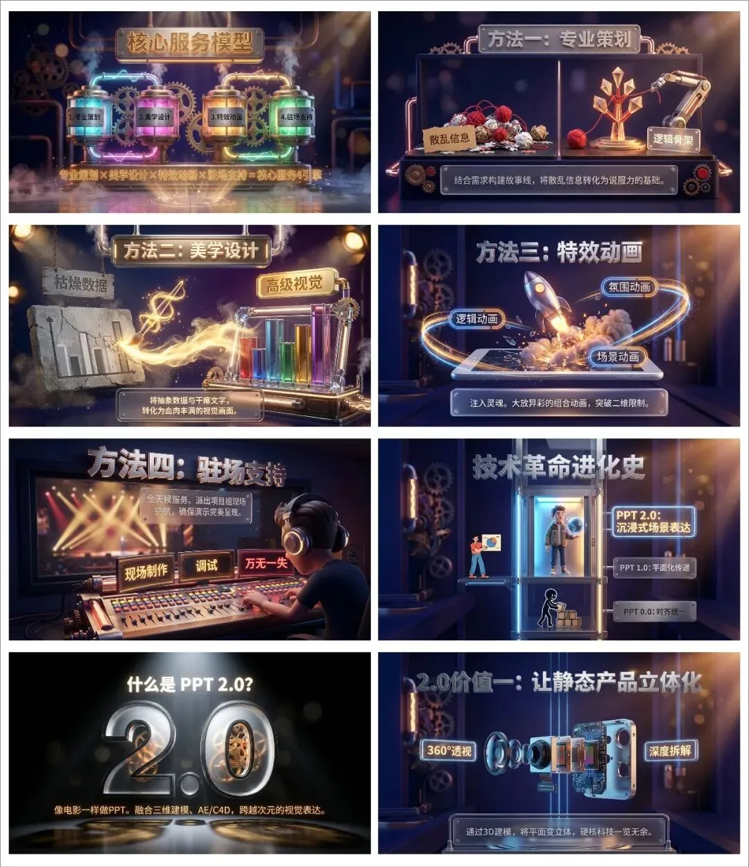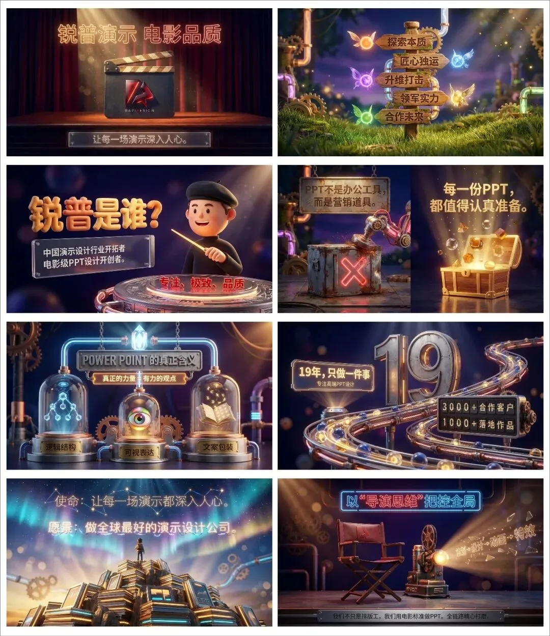 我本来只是想测试一下。结果它一出手,直接把一份公司介绍,做出了皮克斯动画的感觉。
