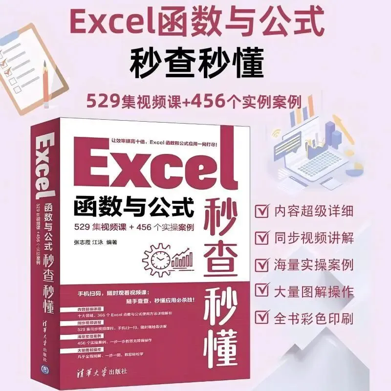 "《Excel函数与公式秒查秒懂(529集视频课 456个实操案例)》本书以 Excel 2021 版本为基础,系统全面地介绍了 Excel 中各种常用函数与公式的语法功能、应用技巧和实用案例,是一本全面介绍 Excel 函数与公式的应用教程,也是一本 Excel 函数与公式的速查手册。全书共 12 章,具体内容包括公式与函数基础、公式错误修正及常见问题、逻辑函数、数学与三角函数、统计函数、文本函数、日期与时间函数、查找和引用函数、信息函数、财务函数、数据库函数和工程函数。本书在讲解过程中,每个重要知识点均配有实例操作和同步教学视频,并提供源文件,便于读者学练结合,高效学习。 全书包含 366 个常用函数,529 集同步讲解视频、378 个 Excel 函数公式解析和 456 个 Excel 函数行业应用案例,非常适合Excel 各层次的读者学习使用,行政管理、财务管理、市场营销、人力资源管理、统计分析等人员均可将此书作为案头速查参考手册。本书适用于 Excel 2021/2019/2016 及以下版本。"