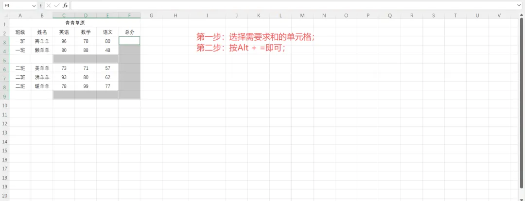 Alt + =:快速插入求和公式,搭配定位空值很不错哦!