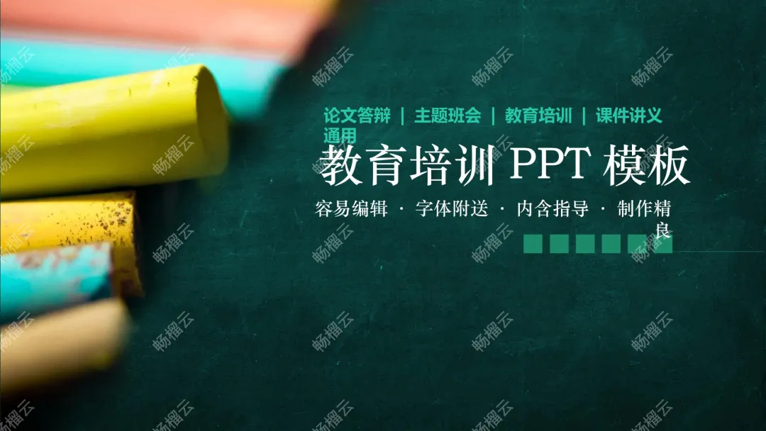 这是一份PPT演示文稿,适用于论文答辩、主题班会、教育培训等场景,属于通用课件讲义模板。该模板制作精良,容易编辑且附赠字体,内含制作指导,用户可直接在对应位置输入自定义内容,灵活适配各类教学汇报需求。