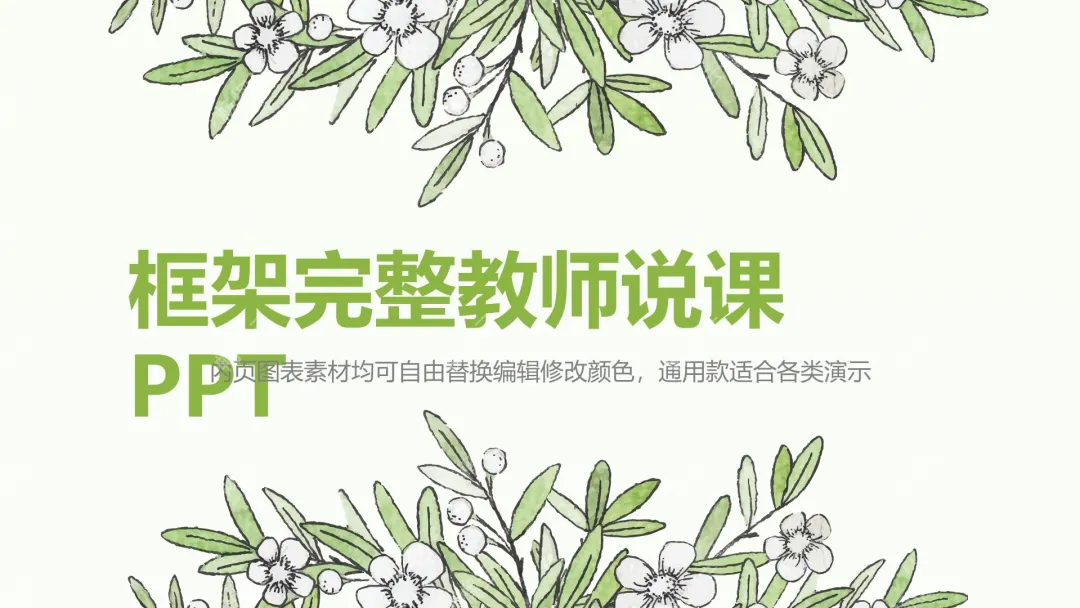 这是一份PPT演示文稿,这款教师说课PPT框架完整,内页图表素材均可自由替换编辑修改颜色,属于通用款演示模板,适合各类教学说课场景使用,能够帮助使用者从排版到设计打造出最佳的演示效果。