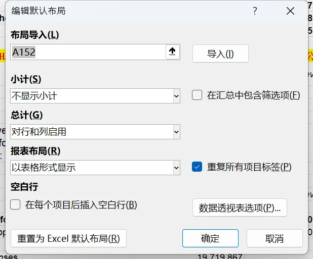 1.可以编辑默认布局,设置成“不显示小计”、“以表格形式显示”、“重复所有项目”是我比较最常用的形式。