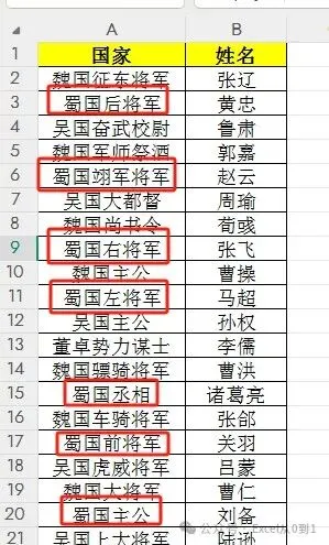 筛选条件就是我们要确定哪些数据是符合要求的,在这里我们的条件就是判断A列中的国家是否是蜀国。