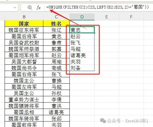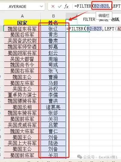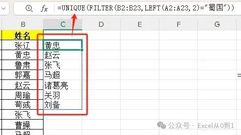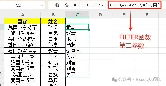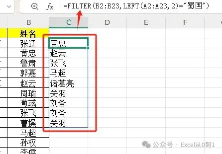 拆解2:提取B列中蜀国对应的姓名。简单介绍一下FILTER函数的用法: