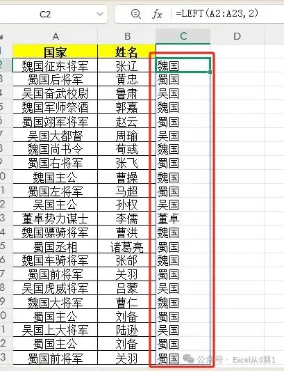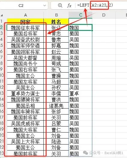 在回到正题,我们要用LEFT函数将第一列的前两个字给提取出来。