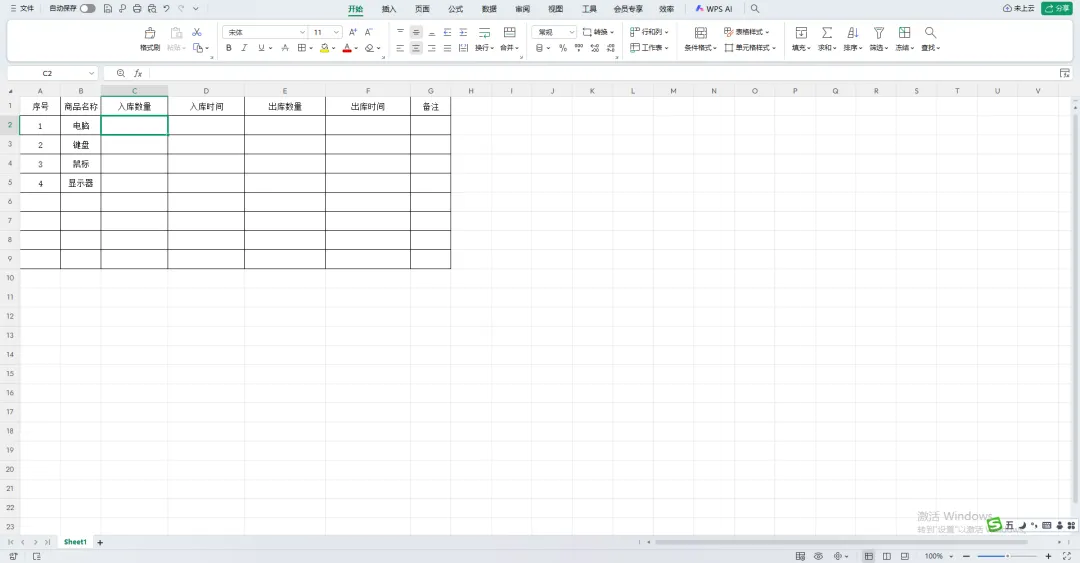 如下图所示(出入库产品数量登记表):