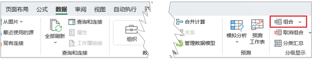 当处理大型电子表格时,反复隐藏和取消隐藏行或列可能会很麻烦。分组功能提供了一个更好的解决方案。你可以选择要分组的行或列,然后在数据标签上点击“分组”。