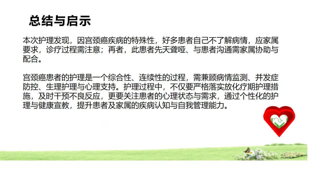 本个案旨在探索5A护理模式在特殊宫颈癌患者中的应用,为提升聋哑癌症患者护理质量、改善治疗结局提供实践参考,推动护理工作从经验主导向证据导向转变,践行以患者为中心的护理理念。