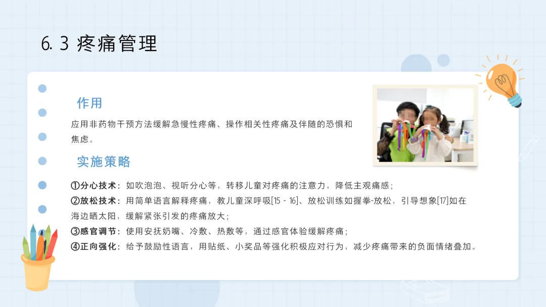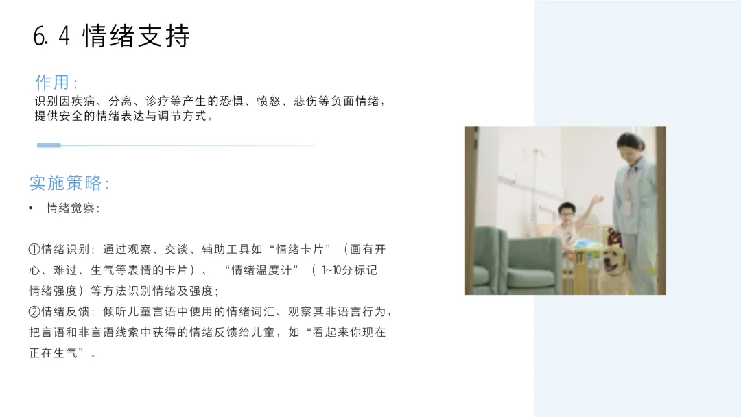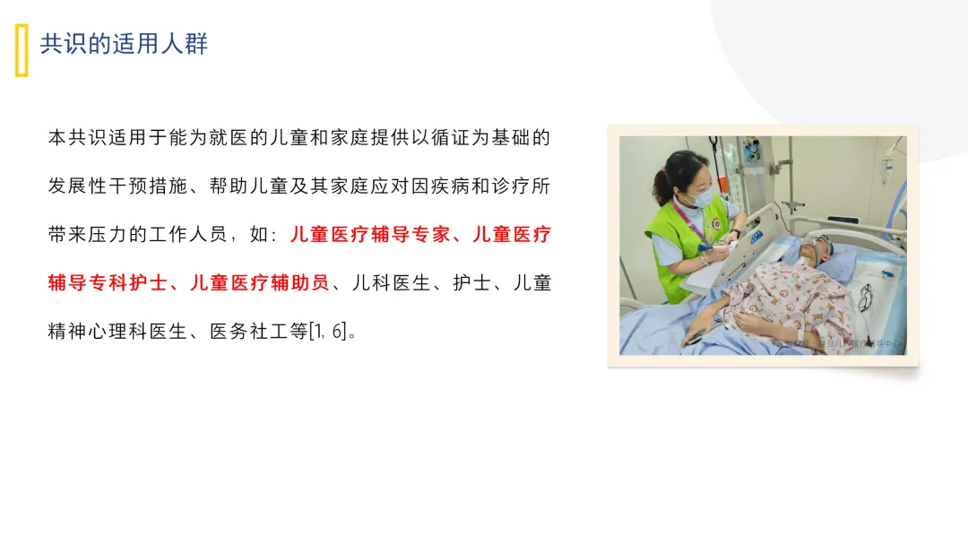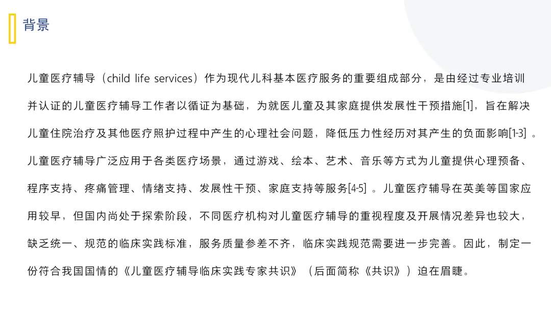 儿童医疗辅导(Child Life)作为现代儿科基本医疗服务的重要组成部分,旨在解决儿童住院治疗及其他医疗照护过程中产生的心理社会问题,降低压力性经历对其产生的负面影响。鉴于儿童医疗辅导在国内尚处于探索阶段,缺乏统一、规范的临床实践标准,四川大学华西第二医院、浙江大学医学院附属儿童医院、深圳市儿童医院、复旦大学附属儿科医院、香港特别行政区儿童癌病基金共同成立了多学科专家组成的共识制定小组,通过系统查阅文献资料及专家论证,制定了本共识。本共识涵盖共识适用人群、适用场所、实施环境、实践人员选拔标准、实践人员的培训及考核、实践原则、核心服务内容、实施流程、效果评价等内容,可为儿童医疗辅导实施者提供有效的临床实践指导。