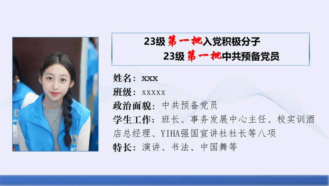·技巧:单独呈现更易被评委捕捉,具体可参考以下表述:实习部分,可说明“在XX单位XX岗位实习,负责XX工作,协助完成XX任务,提升了XX能力,获得实习单位好评”;社会实践部分,可说明“参与XX社会实践活动,深入基层完成XX调研/服务,累计服务时长XX小时,形成XX报告.....
