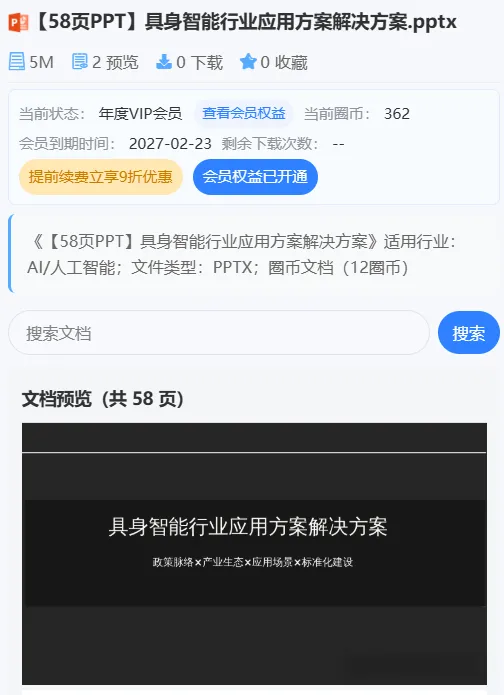 在人工智能浪潮中,具身智能正成为推动行业变革的关键技术。然而,如何将前沿理论转化为可落地的商业应用,是许多从业者面临的挑战。我们为您带来《【58页PPT】具身智能行业应用方案解决方案》,这是一份专为AI行业从业者设计的实用指南,聚焦实际案例与执行路径,助您快速把握技术落地机遇。