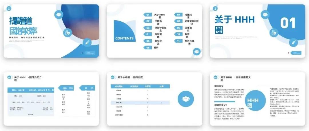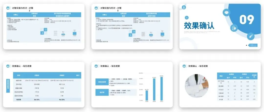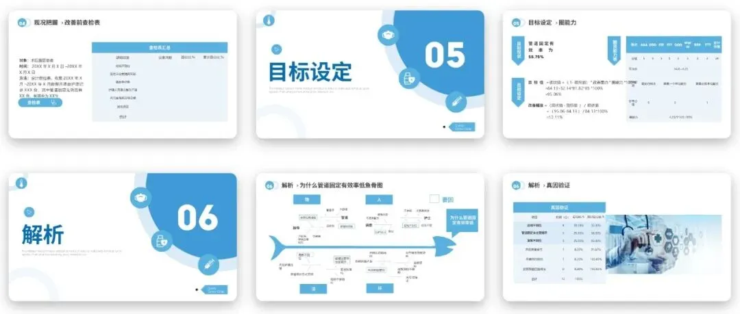 提高管道固定有效率品管圈成果汇报PPT中呈现的目标达成率与进步率计算方法与结果,为临床护理品管圈活动的成果评定提供了标准化范本,能够精准、客观地评价质量改进项目的实施成效。