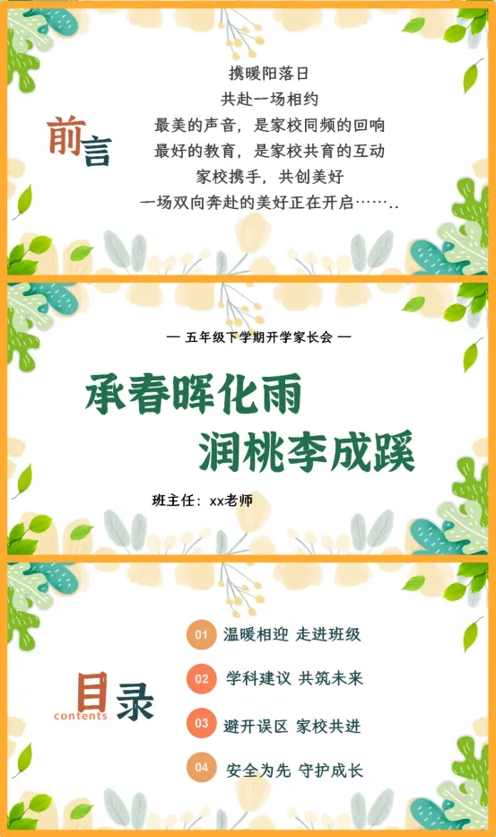 五年级下学期家长会ppt:承春晖化雨,润桃李成蹊.(含逐字稿)